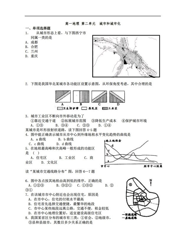 地理人教版2.1城市內(nèi)部空間結(jié)構(gòu)測(cè)試3必修2 地理人教版2.1城市內(nèi)部空間結(jié)構(gòu)測(cè)試3必修2