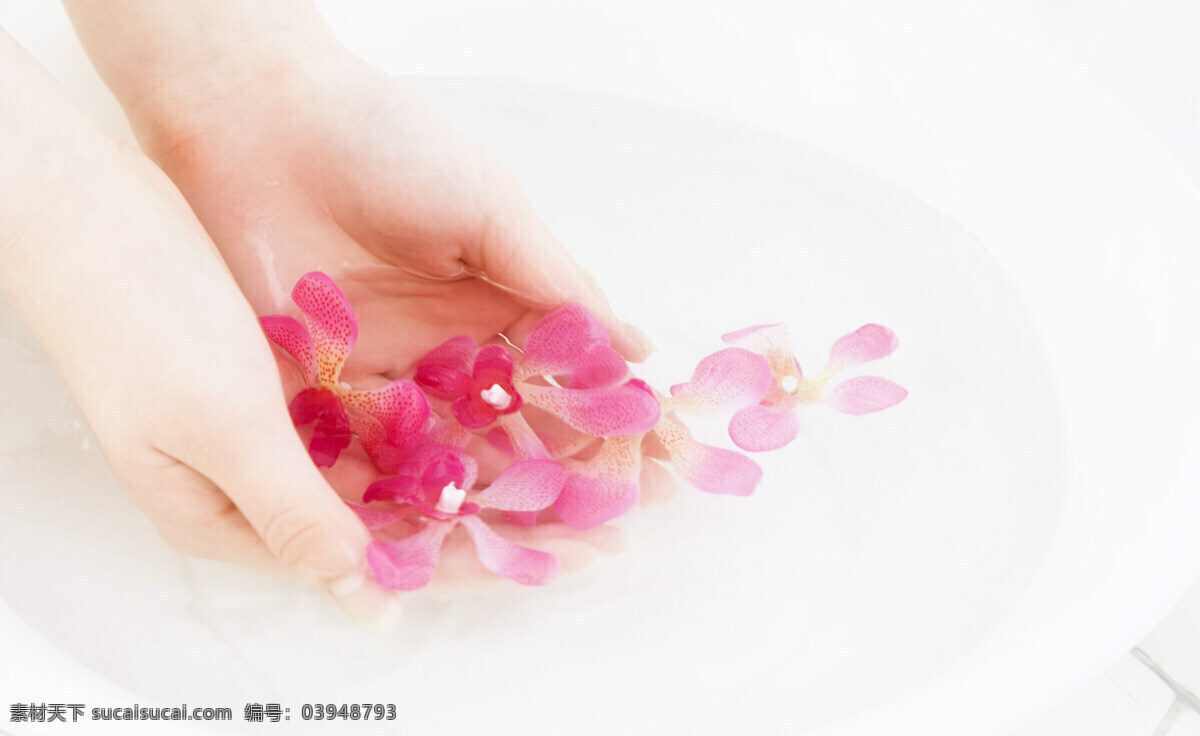 美女洗手 手 水 臉盆 花朵 生活百科 生活素材 攝影圖庫(kù)